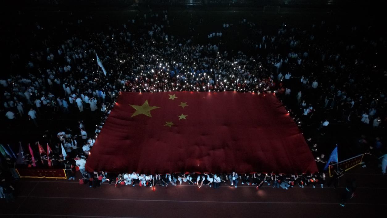 奔跑结束后,全场齐声高唱《我爱你中国》,用歌声表达对祖国的深情告白。