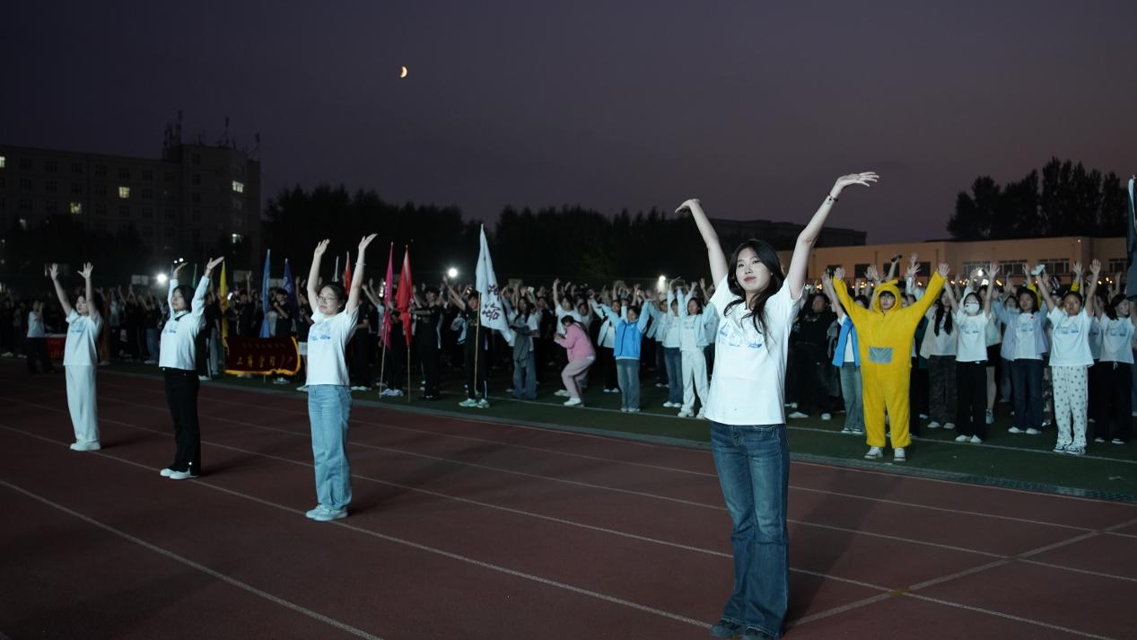 艺术学院党总支书记于利带领全体师生进行起跑前的热身。校领导们率先垂范,以饱满的精神和规范的动作点燃全场热情,将现场氛围推向高潮。
