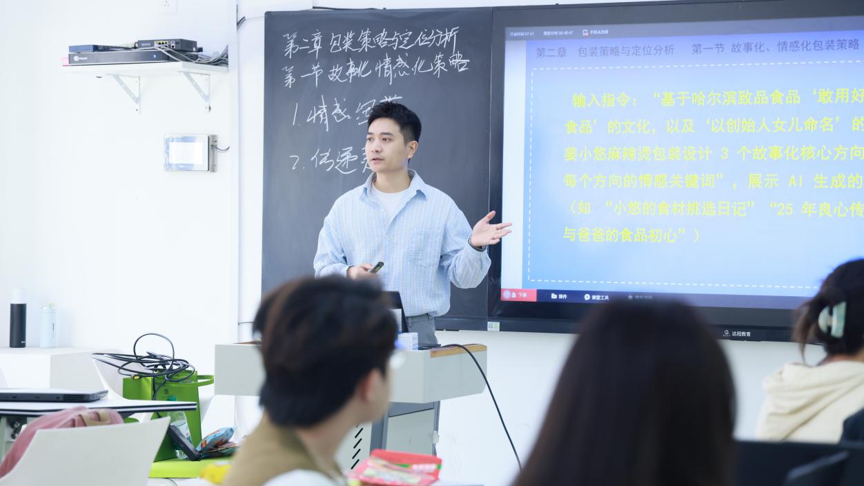 在艺术学院张学艺老师的包装设计课上,学生以“麻辣烫”为主题,借助AI工具融合地域文化与现代设计,打造兼具品牌故事与情感共鸣的包装方案。北大师生共同参与,提出通过祝福语、暖心卡片和冰雪IP形象,让包装成为“情感载体”。周晓铭老师的短视频拍摄与制作课则引导学生探索个人IP创作,围绕“AI辅助与独立思考”的平衡展开讨论,北大师生以演化心理学和运动场景访谈为切入点,与哈剑桥师生在内容创作中碰撞创意,展现出跨学科融合的创新能力。