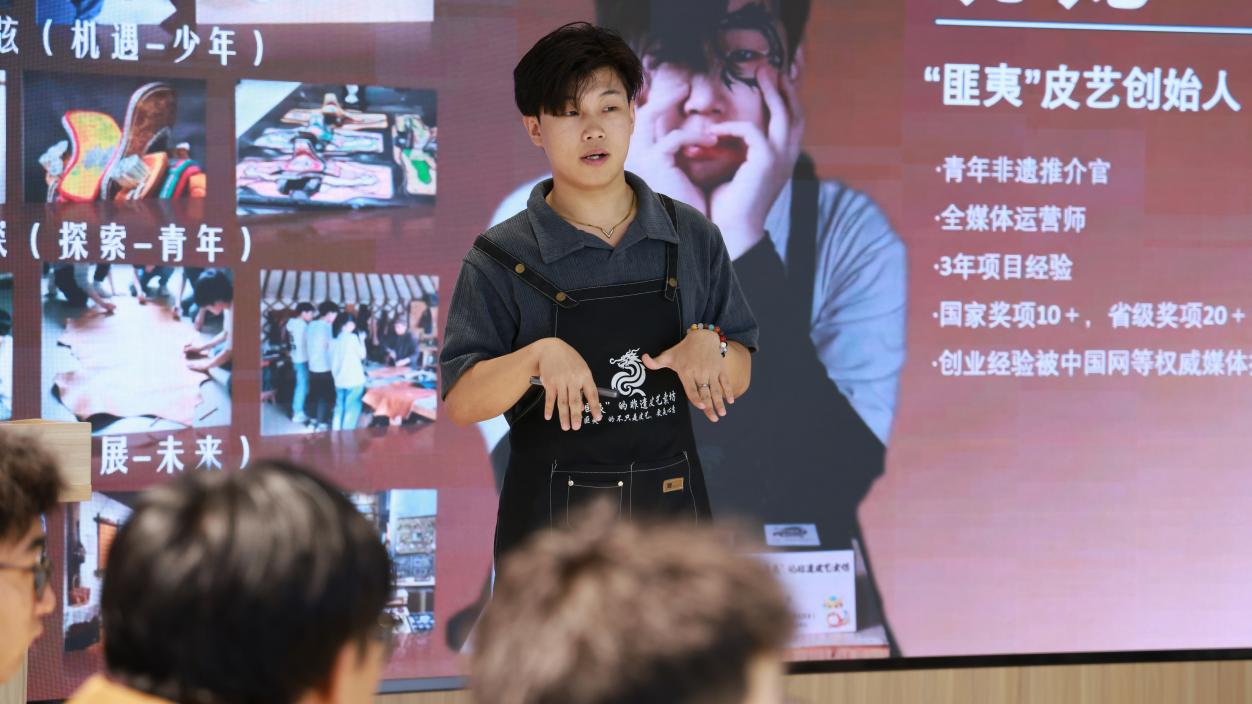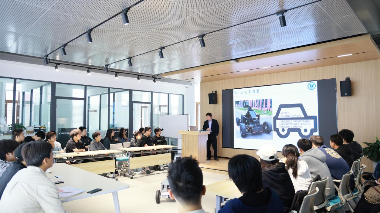 在大学生创新创业中心,北大师生参与了“无人车趣享未来”与“非遗皮艺创业”两场分享会。汽车与机电工程学院刘勃老师讲解了无人车的传感器布置与系统架构,展示了学生团队在智能网联汽车领域的实践成果;艺术学院学生姚龙分享了将内蒙古三千年皮雕技艺与现代设计结合,打造“亲手做更有爱”文创品牌的创业历程,北大师生也参与到皮艺雕刻的实践中,在动手过程中感受传统文化的魅力。